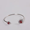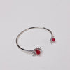 Dandelion Bracelet captures the delicate magic of a blooming dandelion in a modern, sculptural form. Each open-ended bangle features two ruby crystals, one larger centerpiece surrounded by fine metal rays, and one smaller gem echoing its glow. The result is a striking contrast of size, texture, and brilliance that makes the bracelet feel both whimsical and luxurious.