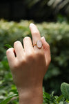 Elegant in its simplicity, the Whisper Ring captures the serene beauty of soft light and gentle motion. Crafted in 18k gold-plated 925 sterling silver, it features a single rose quartz stone that radiates calm and harmony. The smooth, minimalist band embraces the stone like a quiet promise — delicate yet enduring, refined yet full of emotion. A timeless piece that mirrors the grace of the woman who wears it, it speaks softly of love, balance, and inner strength.